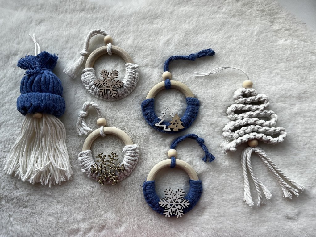 Vánoční ozdoby na stromeček z macramé